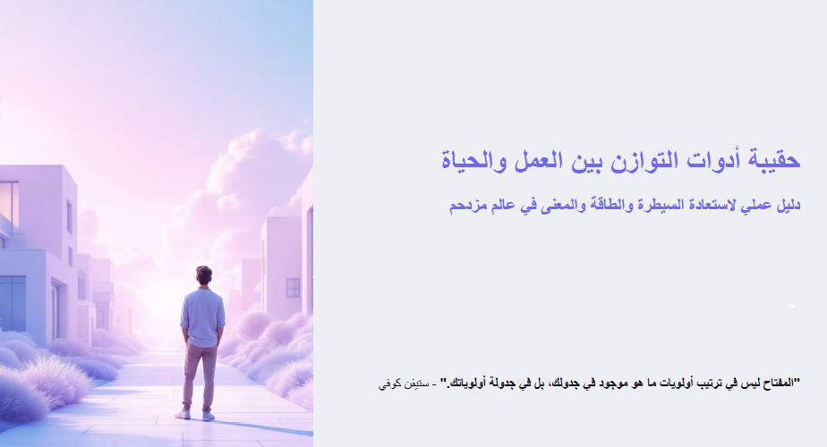 هذه الحقيبة هي دليلك العملي لإعادة التوازن بين العمل والحياة، عبر أدوات واضحة تساعدك على استعادة الوقت، والطاقة، والهدوء الداخلي.